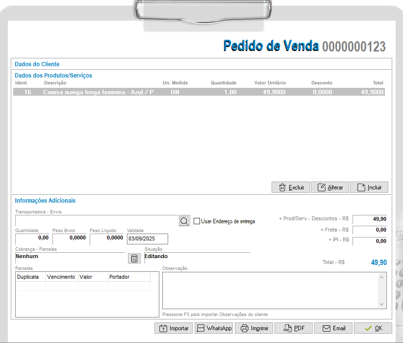 Lançando produto com grade no DAV (Orçamento / Pedido de Venda) e DAV-OS (Ordem de Serviço)