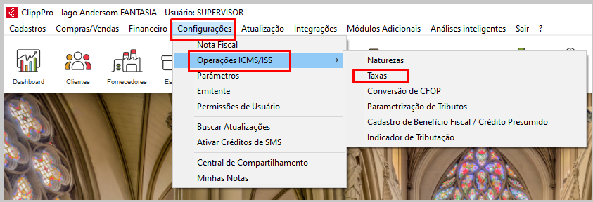 - Acesse agora Configurações / Operações de ICMS/ISS / Taxas;