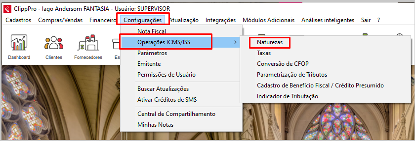 - Acesse Configurações / Operações de ICMS/ISS / Naturezas;