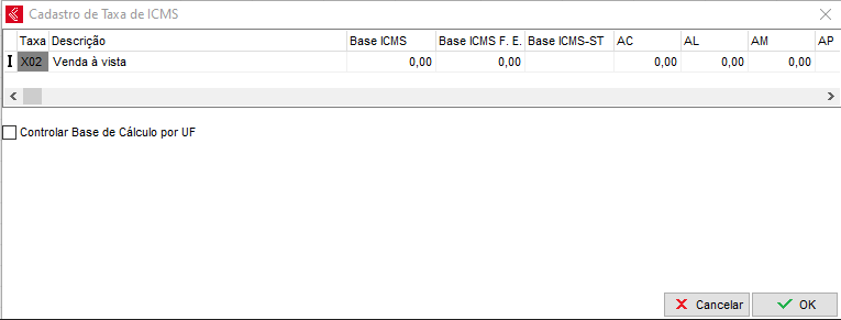 Empresas Optantes pelo Simples Nacional não tributam ICMS na Venda através da NFCe, portanto, os campos Base ICMS bem como a % da Alíquota preenchida na coluna de seu Estado devem ser igual à zero. De qualquer forma, antes de qualquer alteração, consulte sua contabilidade. - Após concluir clique no OK e fecha a tabela;