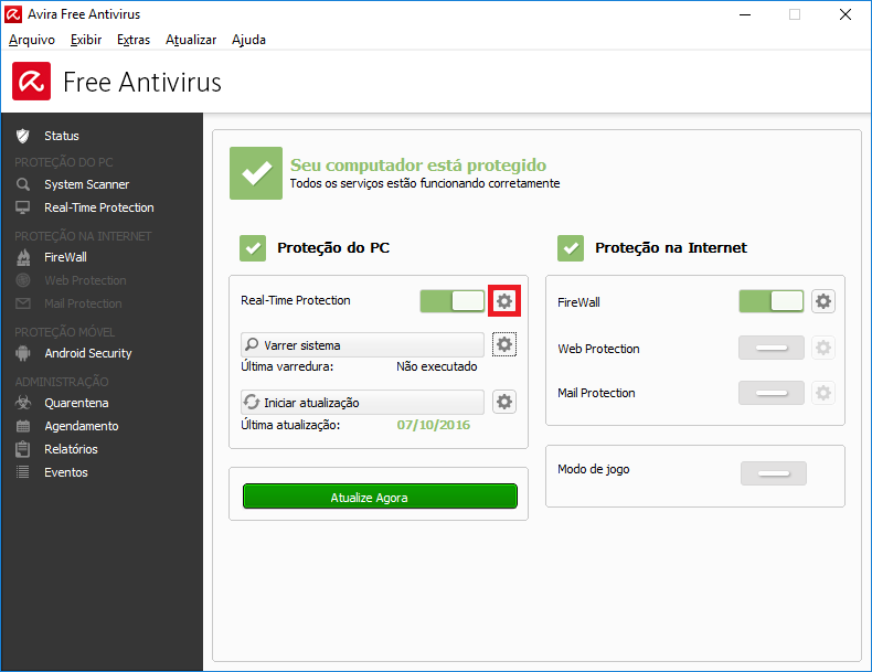 - Na tela inicial em Real-Time Protection, clique no ícone da ferramenta;
