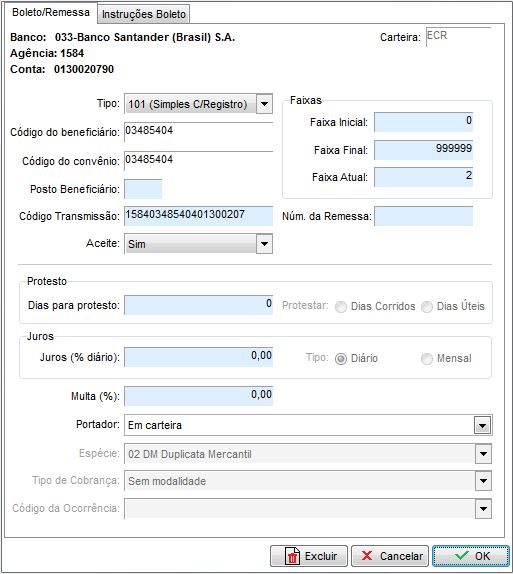 Configuração de Boleto de Cobrança - Santander