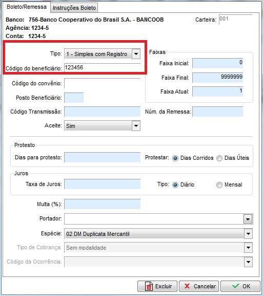 - Dias para protesto: Selecione corretamente de acordo com o que o banco passar (caso não protestar, colocar 0).